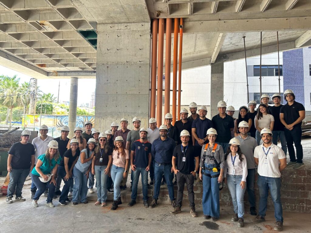 Durante a visita, os estudantes observaram etapas fundamentais da execução, além de discutirem soluções de engenharia aplicadas em edificações de grande porte, aproximando teoria e prática em um ambiente real de obra.