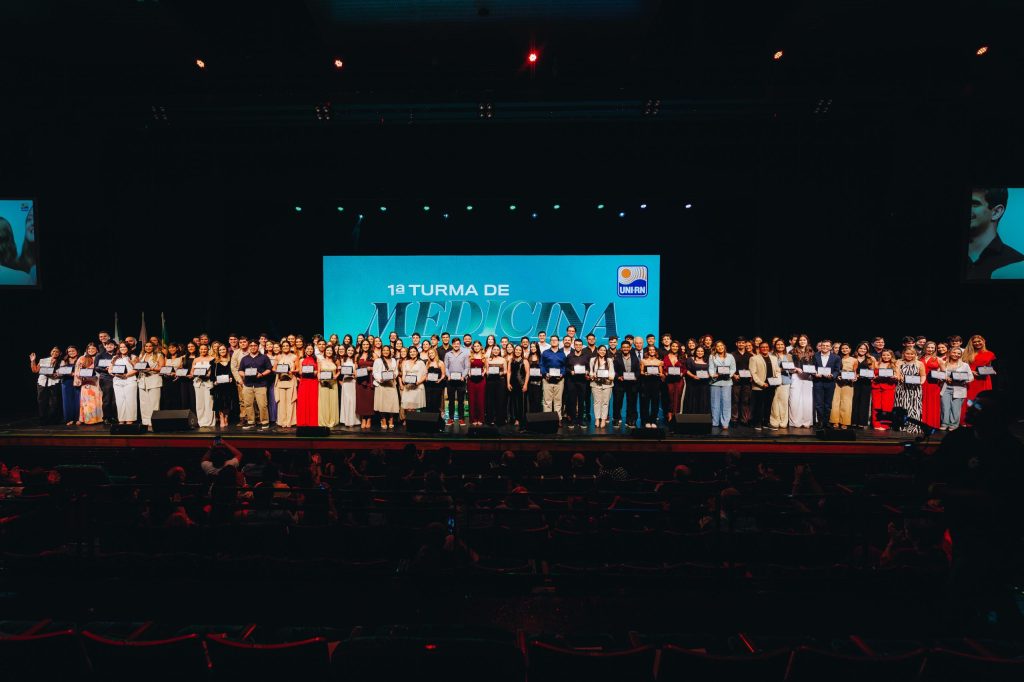 Uma noite de emoção e muitos ensinamentos marcou a aula magna do curso de Medicina do Centro Universitário do Rio Grande do Norte (UNI-RN), na quinta-feira, 25, no teatro Riachuelo, em Natal.