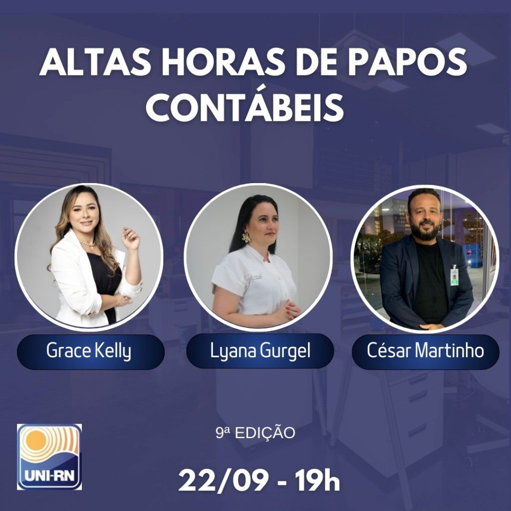 A programação contará com a participação de Lyana Gurgel, contadora formada pelo UNI-RN; Grace Kelly, sócia da Aplenna Contabilidade, Estratégia e Gestão, com vasta formação em tributação e auditoria; e César Martinho, contador especialista em finanças e orçamento público, atualmente secretário adjunto da Secretaria Municipal de Saúde de Parnamirim (SESAD).